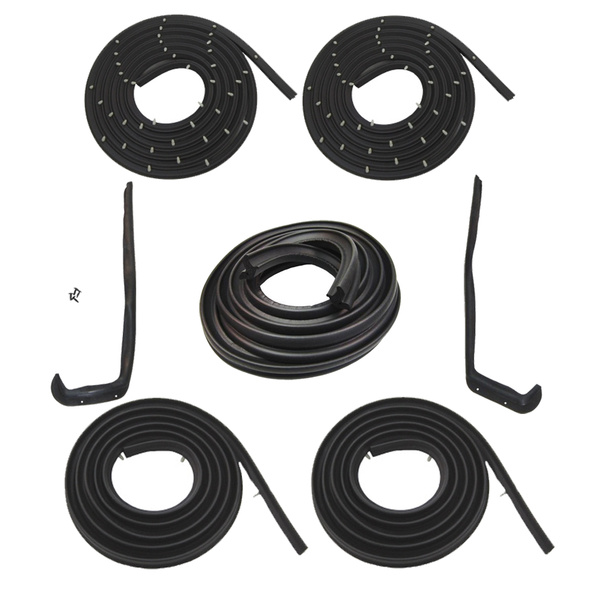 This seven (7) piece Body Weatherstrip Kit includes the major weatherstrip components and some other essential parts needed for your restoration project. These parts are designed from originals with fully molded corners and end pieces for superior performance and factory fit.