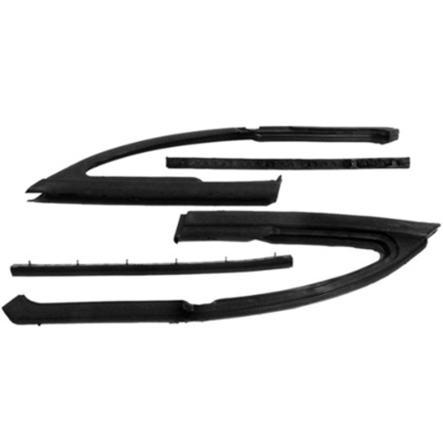 This four (4) piece Front Vent Window Weatherstrip Set contains the main vent window and division post weatherstrips. All of the pieces were designed from original parts for a precise, factory fit. The division post weatherstrips contain a metal core for durability and easy installation.