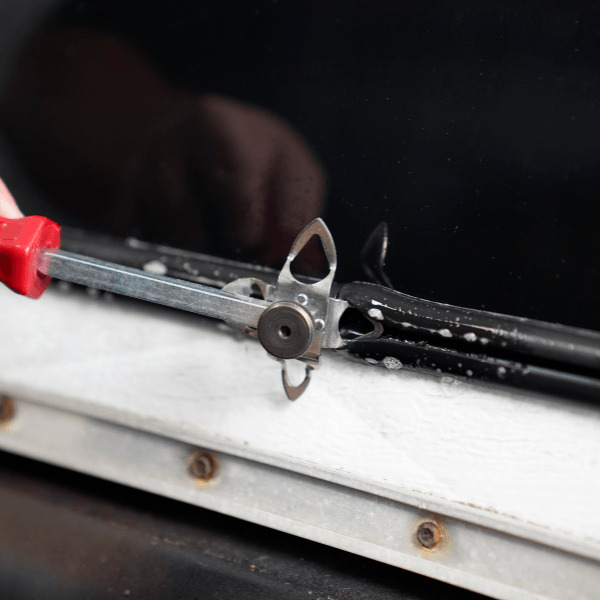 The unique design of this Swivel Tip Locking Strip Tool allows the tip to swivel 90 degrees in either direction to work where others will not. This swivel feature provides the easiest way around corners and under roof overhangs. Just select the tip with the opening that most closely fits your locking strip and then feed into the eyelet.