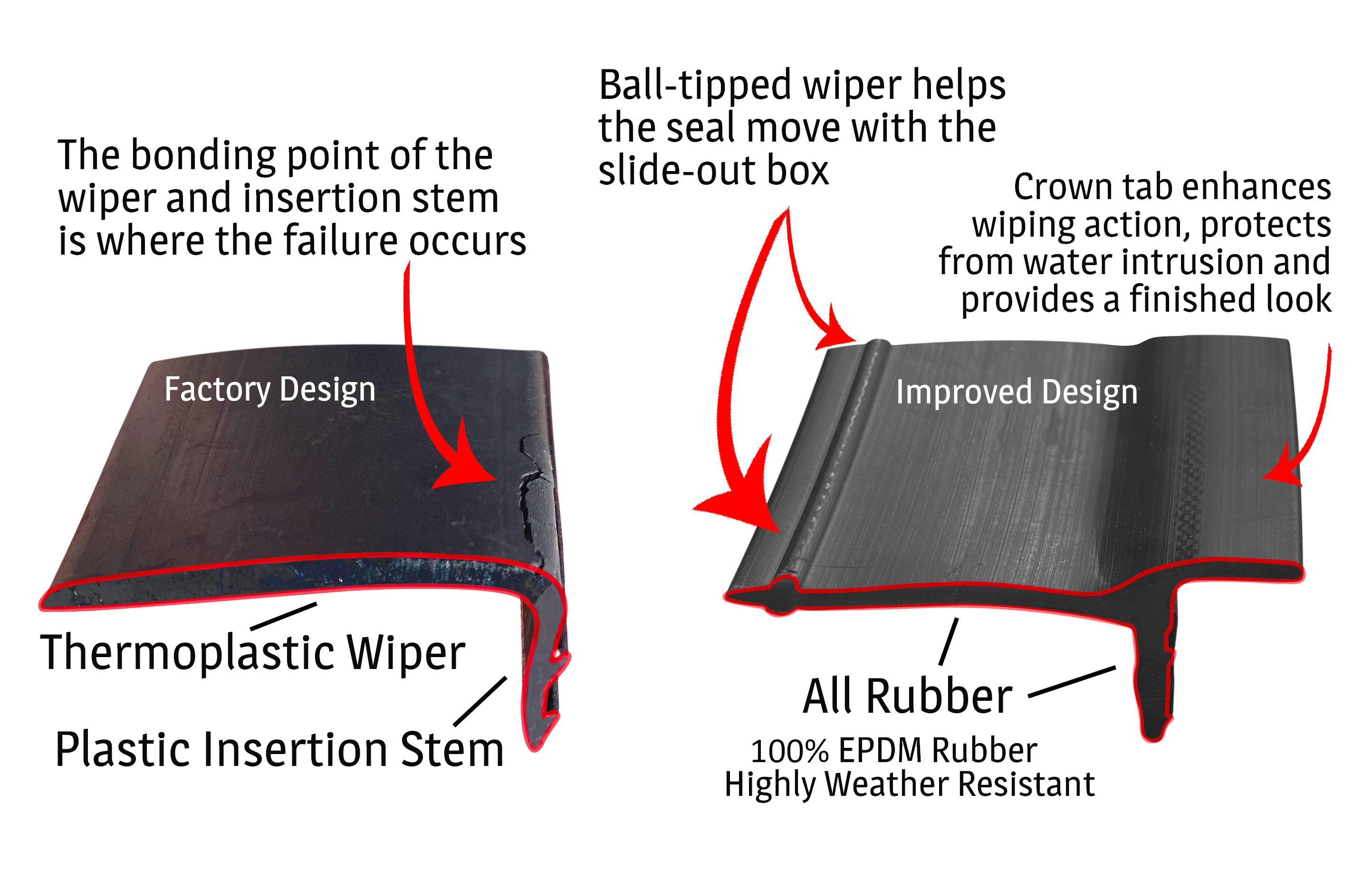 - A ball-tipped wiper to improve wiping action and make sure the wiper moves with the slide-out box.