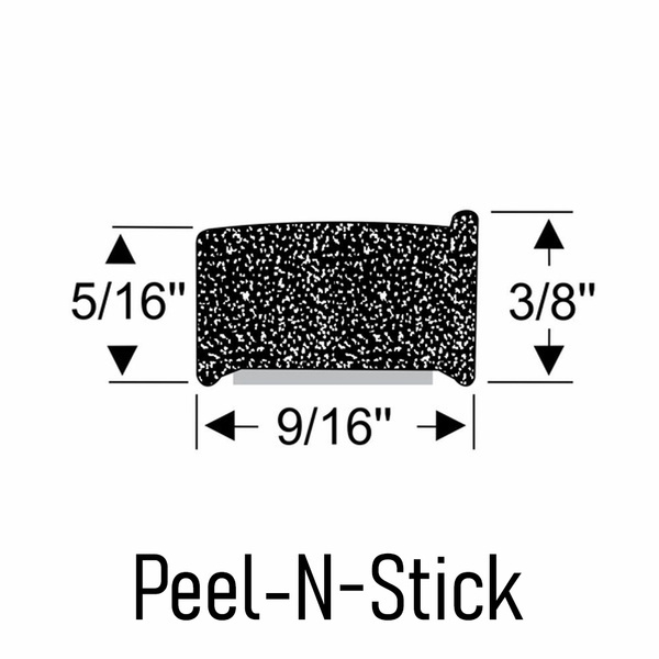 Peel-N-Stick - This weatherstrip has a bonded adhesive Peel-N-Stick backing provides superior adhesion for reliable performance.The exclusive Peel-N-Stick with skirting design provides:
