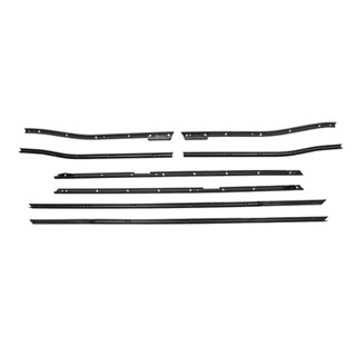 This is an Original equipment style side window horizontal weatherstrip set (also known as beltline weatherstrip). This eight (8) piece set includes inner and outer window felt beltline weatherstrips for each side and quarter window.